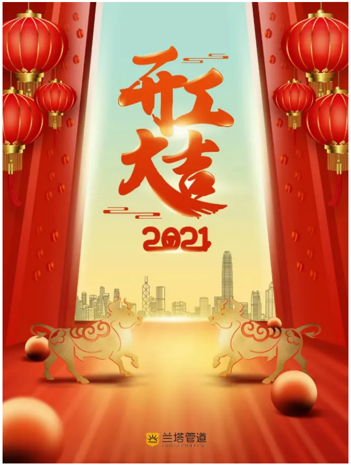 雖然過去的一年充滿困難與挑戰(zhàn),但是蘭德人百折不撓、迎難而上的精神,將每一次的艱難險阻都化為前進成長的動力,并創(chuàng)造出一個個奇跡。這就是優(yōu)秀的你們,更是優(yōu)秀的團隊,2021,相信蘭德家人會目標更遠大,目標更堅定,全力以赴,一步一腳印創(chuàng)造出更多輝煌成績。同樣,在此祝愿所有客戶朋友、供應(yīng)商伙伴們在新的2021年,事業(yè)一帆風(fēng)順步步升,萬事如意展鴻圖,感謝您對蘭塔管道長期以來的大力關(guān)愛和鼎力支持,感恩一路有您!
