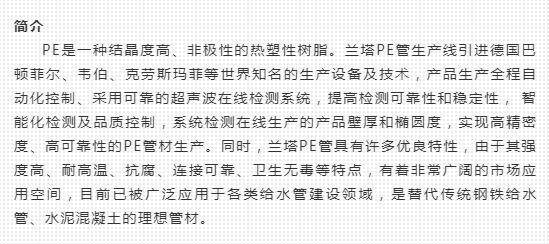 蘭塔管道、產(chǎn)品中心、PE環(huán)保給水管系列